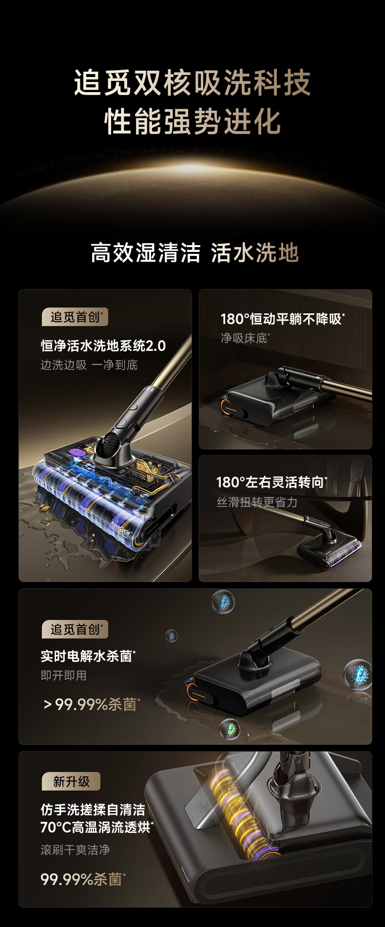 追觅V30 Pro洗地吸尘除螨仪多合一 多功能无线手持 190AW吸力 90分钟续航 100天不脏手